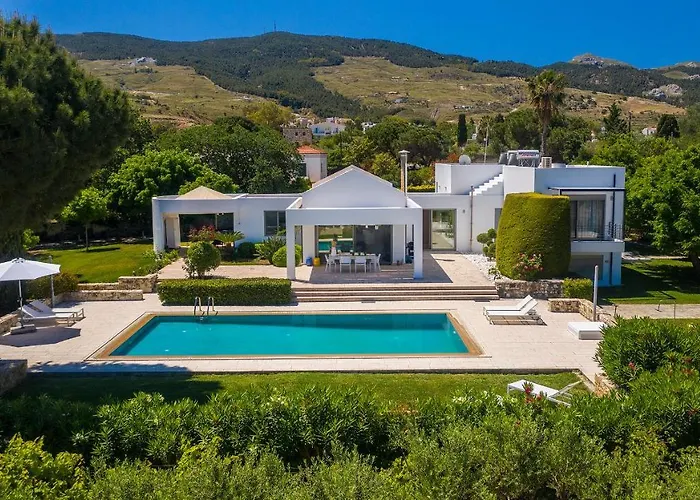 Villa Syndriani med 5 sovrum, som ligger ungefär 5 minuters bilresa från Antika Agora, erbjuder gästerna en uteplats. Gästerna kan delta i pingpong i den här villan, som ligger inom 5 minuter med bil från Hippokrates träd.